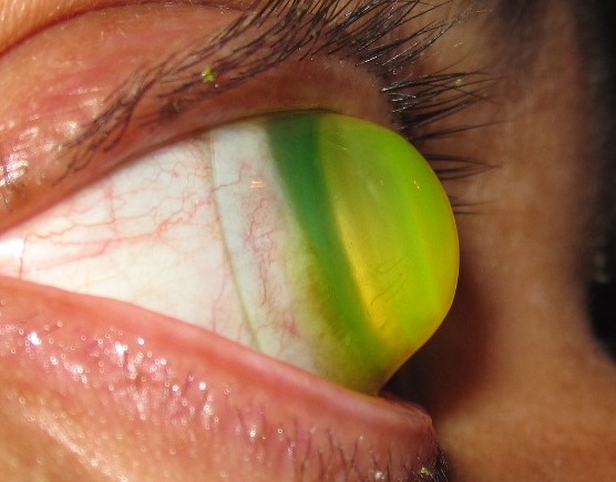 | SCLERALENZEN Scleralenzen kunnen uitzonderlijke voordelen hebben boven corneale lenzen. Meestal wordt nogal geschrokken gekeken naar de grootte van de lens, óók door de beginnende aanpasser. Toch is het draagcomfort van scleralenzen zeker geen belemmering: als men eenmaal een lens in heeft gehad is de reactie vrijwel altijd verrassend positief. Dit heeft te maken met het feit dat een scleralens op de sclerale conjunctiva rust, en niet op het uiterst gevoelige hoornvlies. De belangrijkste vraag is: hoe groot is de lens die we aan willen passen? Hierover verschillen de meningen enigszins: terwijl traditioneel altijd zeer grote scleralenzen werden aangepast (20-24mm), is er een nieuwe stroming van cornea-scleraallenzen die aanzienlijk kleiner zijn en in het segment tot 15mm zitten. Vooral internationaal worden veel van deze kleinere cornea-scleraallenzen aangepast. De laatste trend heeft mogelijk onder andere te maken met het eerder genoemde feit dat de beginnende aanpasser nogal geïntimideerd is door de grootte van de lens. Lens Diameter De grootte van de lens hangt ook af van het type lenspassing. Indien een duidelijke en grote clearance nodig is, een overbrugging van de cornea, dan is dit met een grotere scleralens makkelijker te bereiken. Kort gezegd: hoe groter de lens, hoe meer clearance. Met andere woorden, voor een beginnende keratoconus of een post-LASIK patiënt is zowel een kleinere diameter als een grotere mogelijk, maar als er een grote clearance nodig is, is een grotere scleralens noodzakelijk. Bij de grote scleralenzen wordt los van een goede clearance centraal ook geprobeerd de limbus ‘vrij’ te houden, om ook hier een kleine clearance te creëren. Om dit te bereiken moet allereerst de totale diameter van de cornea worden vastgesteld. Hierbij kan gebruik worden gemaakt van een corneatopograaf, die op decimalen nauwkeurig kan bepalen hoe groot de cornea is. Normaal gesproken kiest men de (pas-)lens optische zone plus overgangszone net iets groter dan de corneadiameter. In de meeste passets is dit standaard overigens. Kleinere scleralenzen hebben de neiging meer in de conjunctiva te zinken omdat het draagvlak van de lens beperkt is tot een kleine ring waar alle druk ligt. Hierdoor ontbreekt elke vorm van mobiliteit van de lens. Bij grotere lensdiameters moet wel eerder gedacht worden aan non-rotatie symmetrische lenzen zoals torische en kwadrantspecifieke varianten dan bij kleinere lenzen die in het limbusgebied blijven, omdat de sclera naar de periferie toe steeds meer verschil in sagittahoogte laat zien (zie deel I van dit tweeluik over scleravorm). Clearance Het hebben, of creëren, van corneale clearance is het belangrijkste voordeel dat scleralenzen hebben ten opzichte van corneale lenzen. De hoeveelheid centrale corneale clearance varieert van grofweg 100 micron bij kleinere typen scleralenzen, zoals bij de cornea-scleraallenzen, tot 400 micron bij grotere diameter scleralenzen. Elke vorm van ‘touch’ op de top van de cornea, ook bij keratoconus, dient te worden vermeden. Het inschatten van de sagittahoogte kan op basis van een passet worden gedaan: de mate van clearance centraal is vrij eenvoudig in te schatten met een optische coupe achter de spleetlamp, met de cornea (grofweg 550 micron dik) als referentiepunt. In het fluoresceïnepatroon (de fluoresceïne wordt al in de lens aangebracht voor het aanbrengen van de lens) kan daarnaast beoordeeld worden of de lens op de top van de cornea aanligt. Men kan steeds hogere sagittahoogte lenzen opzetten, totdat de centrale sagittahoogte optimaal wordt geacht. Vervolgens wordt de limbale clearance beoordeeld. Indien deze onvoldoende is (de lens ligt aan in het limbusgebied), kan met een vlakkere basiscurve de perifere clearance van de optische zone worden vergroot. Sommige lenssystemen zorgen ervoor dat de sagitta onafhankelijk is van veranderingen in basiscurve, bij andere dient hiervoor gecorrigeerd te worden. Hetzelfde geldt voor lensdiameter: een grotere lens zorgt in theorie voor een grotere sagittahoogte, maar ook hiervoor kan standaard worden gecompenseerd door de fabrikant. Dit betekent dat de clearance constant gehouden kan worden, onafhankelijk van BCR- en diameterveranderingen. Luchtbellen onder de scleralens, mits niet veroorzaakt door het onjuist inzetten, zijn een indicatie dat er teveel clearance is. Door de clearance te verkleinen kan dit verminderd worden. Sferische scleralenzen op een torische sclera kunnen ook luchtbellen geven. Beweging De beweging van een scleralens is minimaal tot afwezig tijdens het knipperen (dit is deels de reden waarom scleralenzen zo comfortabel zijn). Wel is het wenselijk dat bij een lichte druk van onderaf (push-up methode) de lens niet vast zit op het oog. Indien fluoresceïne wordt aangebracht nadat de lens al op het oog is geplaatst, is er meestal bij een goede lenspassing enige diffusie van fluoresceïne mogelijk naar de post-lens traanfilm. Dit is bij grotere scleralenzen makkelijker dan bij kleinere lenzen lijkt het. Toxische reacties En dat brengt ons dan uiteindelijk, toegegeven, via een omweg, bij het antwoord op de vraag wat de beste vloeistof is voor het inzetten. Omdat er weinig of geen traanfilmuitwisseling is achter de lens, wat in mindere mate bij nachtlenzen ook het geval is, is de blootstelling aan de vloeistof waarmee de lens wordt ingezet vele malen groter dan bij een gewone lens die overdag wordt gedragen. Toxische reacties zijn daarom zeker niet uitgesloten, en volgens het gros van de experts in het veld is het daarom aan te raden om conserveermiddelvrije zoutoplossing te gebruiken om een zo neutraal mogelijke vloeistof achter de lens te hebben. Zelfs de buffer in vloeistoffen kan volgens sommigen leiden tot oculaire reacties. Single dose units (minims) worden vaak geadviseerd, en vergeet vooral niet heel duidelijk uit te leggen dat deze vloeistof natuurlijk niet voor tijdens het bewaren van de lens is: daar zijn uiteraard desinfectievloeistoffen voo