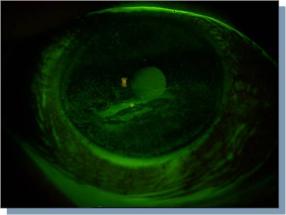 cornea. Indien dit gebeurt, ‘zuigt’ de fluoresceïne zich in het stroma en is er doorgaans een ‘wolk’ van