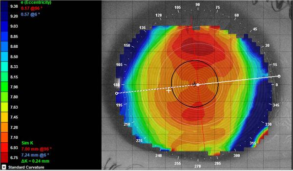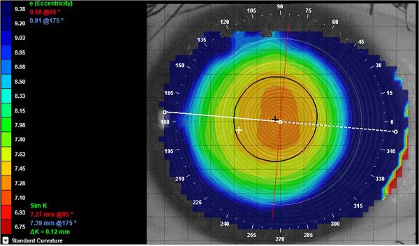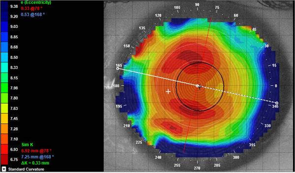 fluctuating vision. The topography map below was taken after removing his old lenses. As